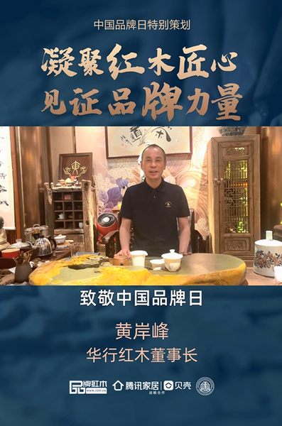 5月10日,是第六個中國品牌日。品牌紅木聯合騰訊家居|貝殼,與一眾紅木品牌大咖發聲,華行紅木董事長黃岸峰受邀發聲,致敬中國品牌日。