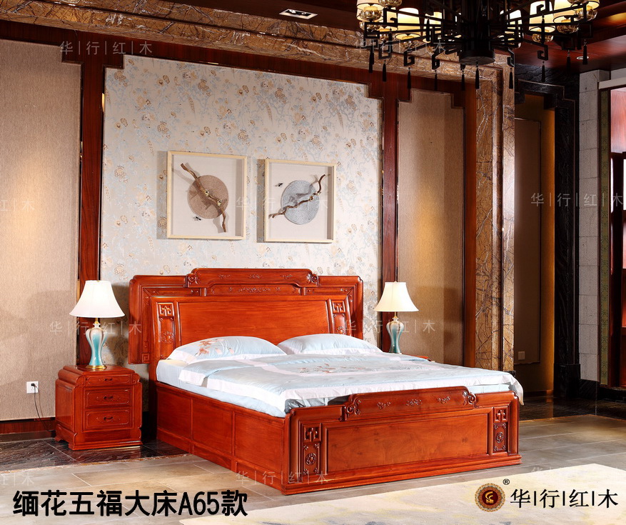 緬花五福大床A65款圖片及家具信息