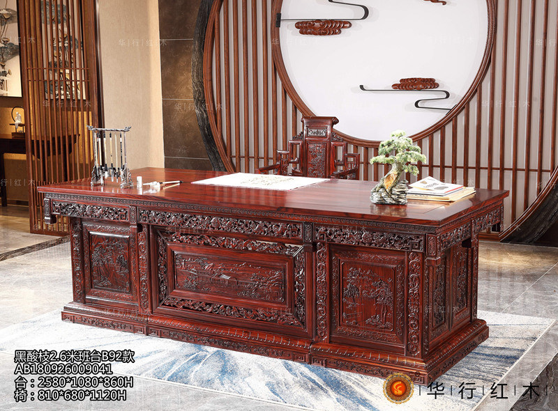 黑酸枝2.6米班臺(tái)B92款圖片及家具信息