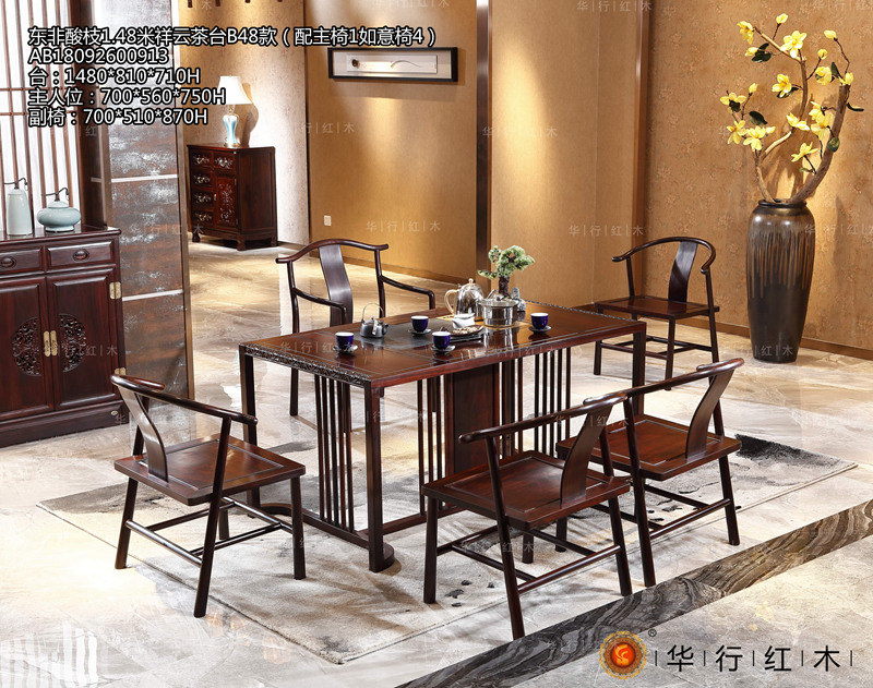 東非酸枝1.48米祥云茶臺B48款(配主椅1如意椅4)圖片及家具信息