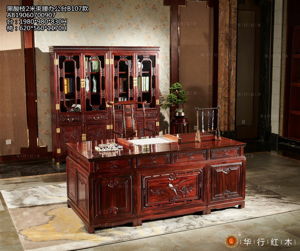 黑酸枝2米束腰辦公臺B107款圖片及家具信息