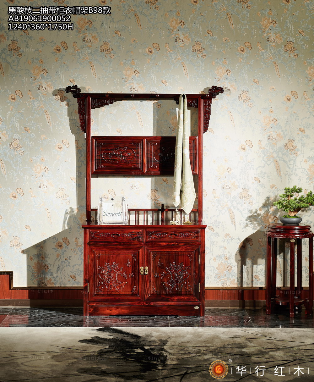 黑酸枝二抽帶柜衣帽架B98款圖片及家具信息