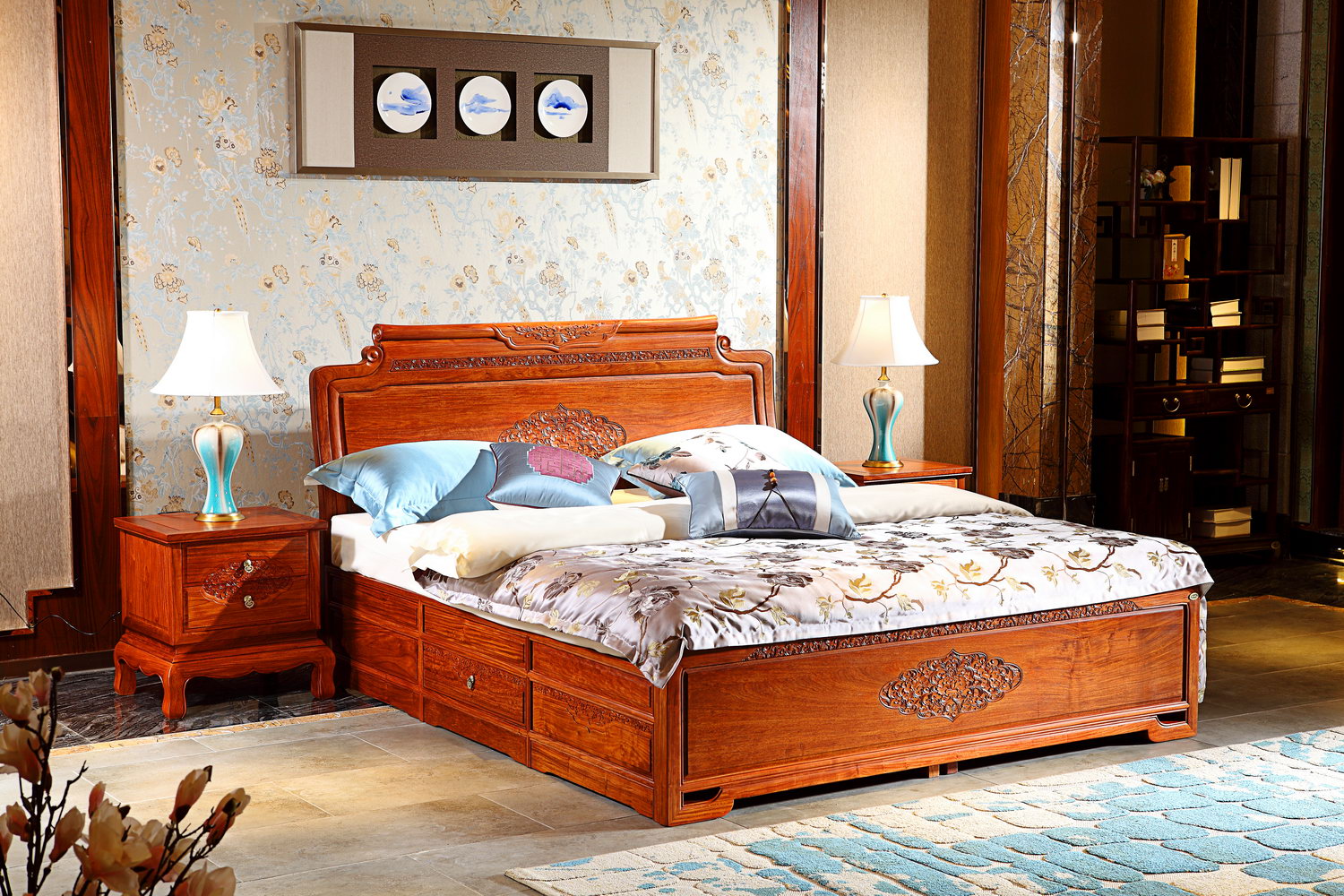 緬花如意大床B23款圖片及家具信息