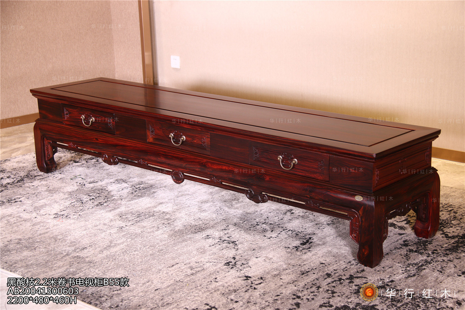 黑酸枝2.2米卷書電視柜B55款圖片及家具信息