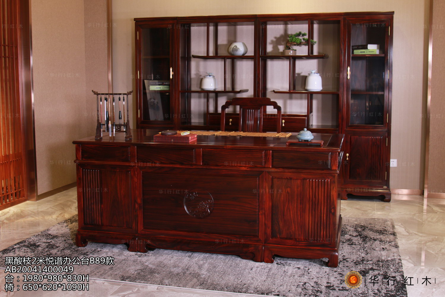 黑酸枝2米悅譜辦公臺B89款圖片及家具信息