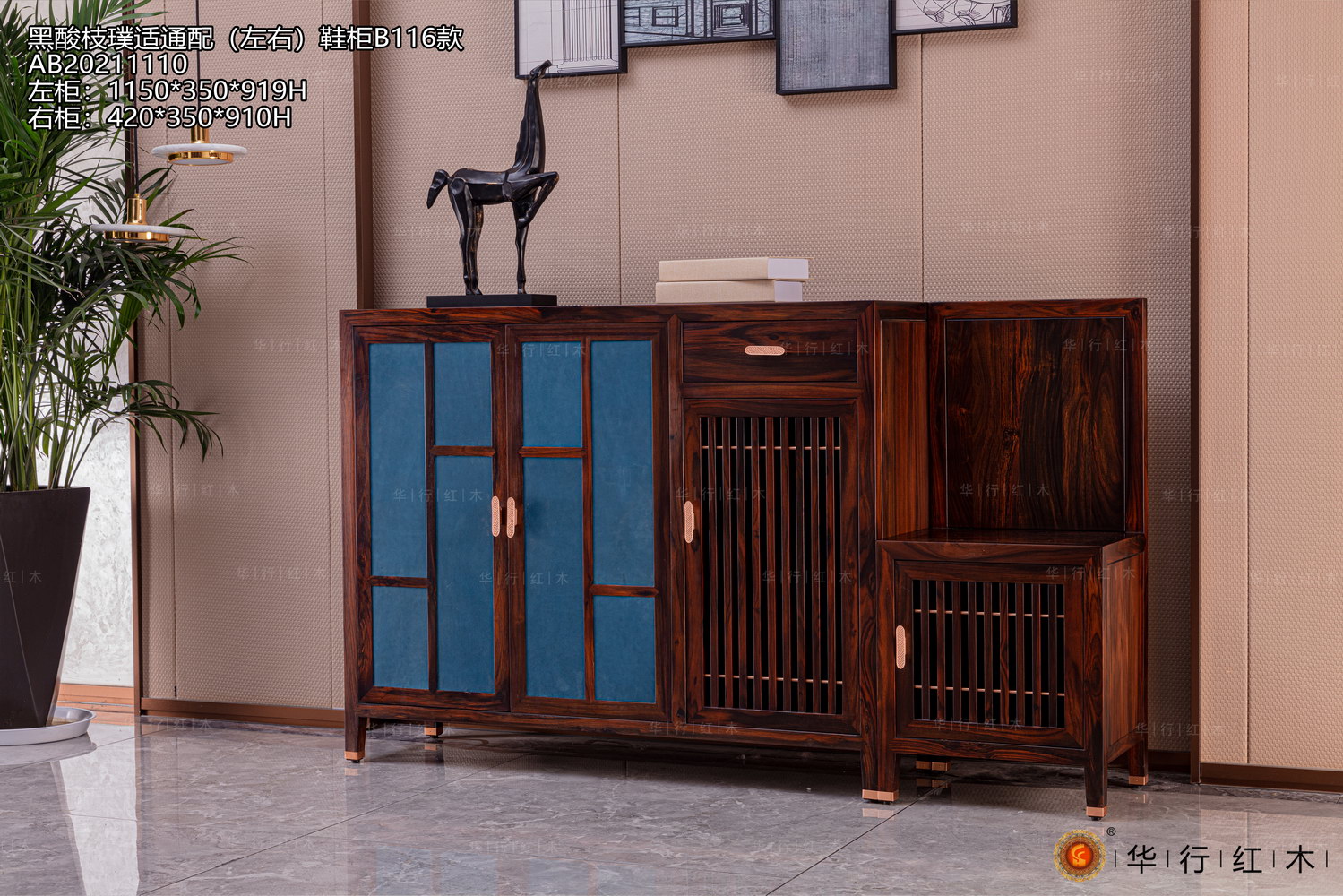 黑酸枝璞適通配(左右)鞋柜B116款圖片及家具信息