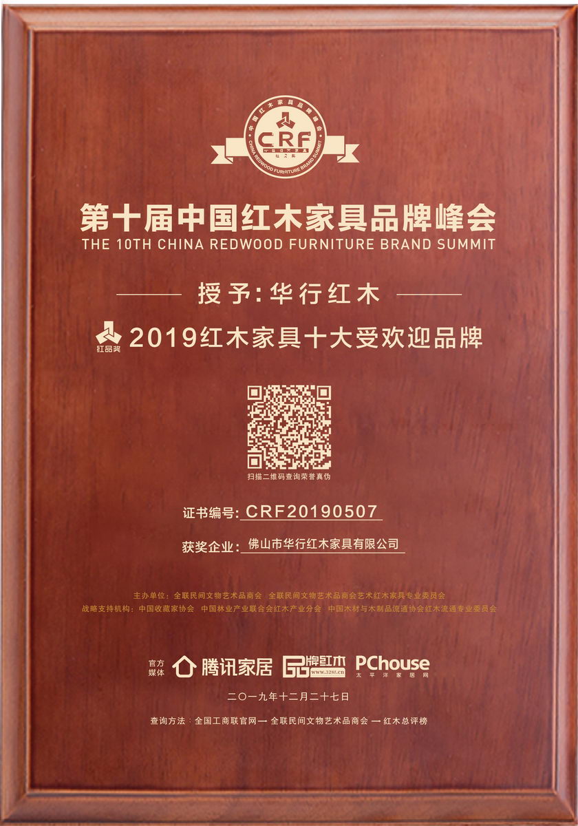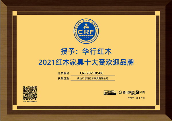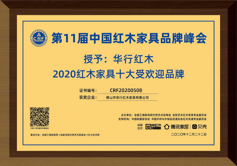 • 首屆消費者喜愛的經典中式紅木家具金獎